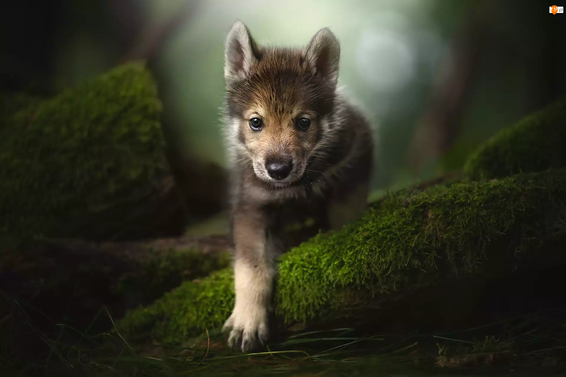 Szczeniak wśród mchu