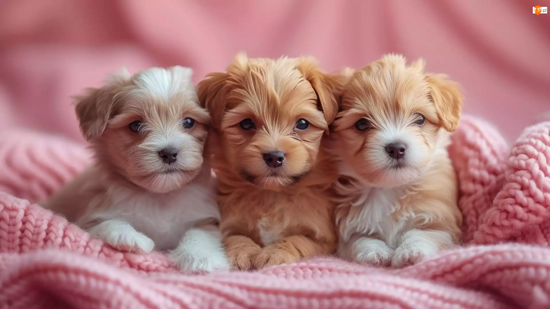 Szczeniaki, Posłanie, Rudo-białe, Psy, Różowe