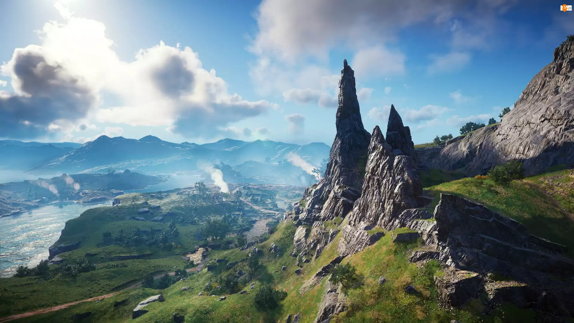 Assassins Creed Valhalla, Gra, Morze, Droga, Góry, Drzewa