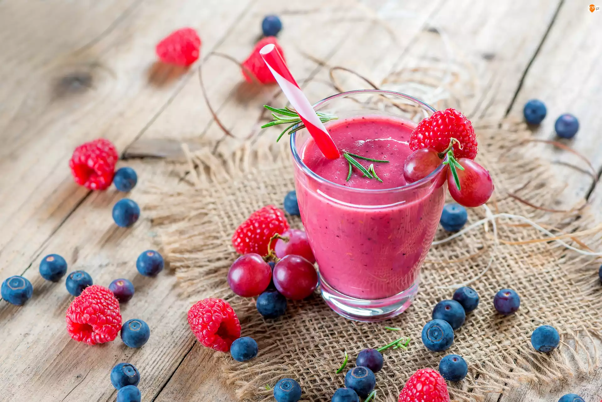 Smoothie, Napój, Borówki, Szklanka, Maliny, Sok