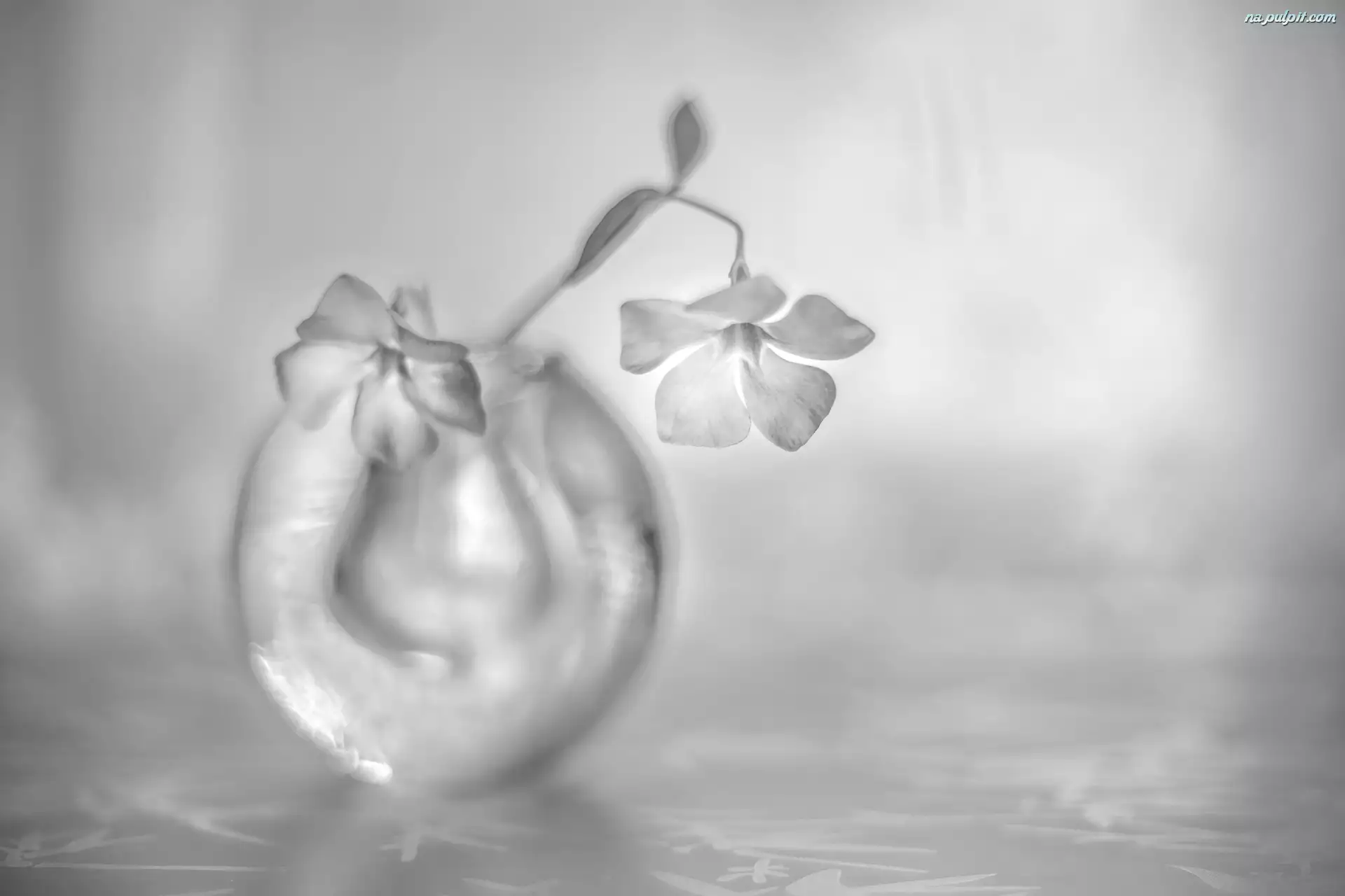 Szklany, Czarno-białe, Barwinek, Kwiaty, Wazonik