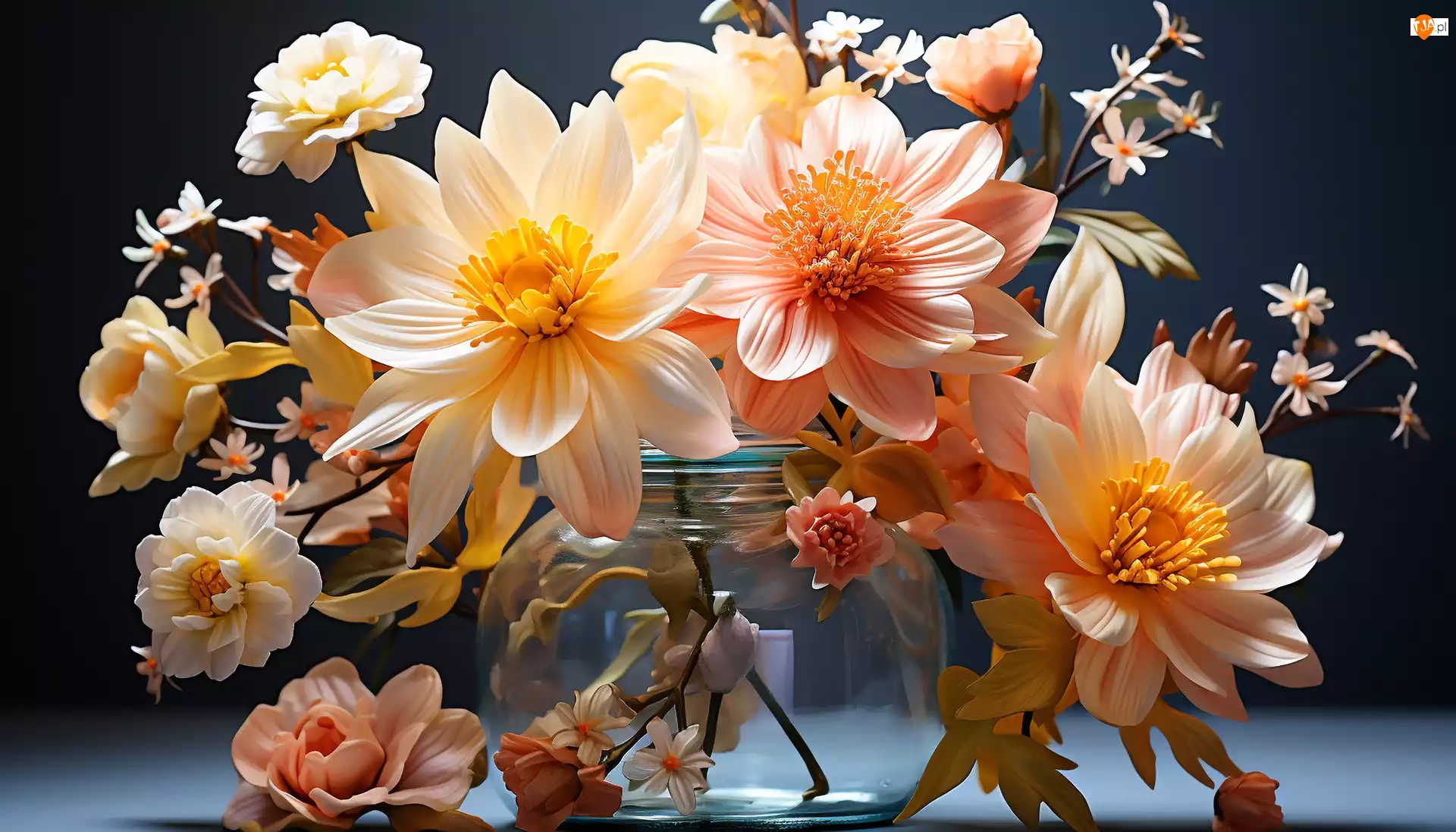 Szklany, Grafika, Bukiet, Kwiaty, Wazon