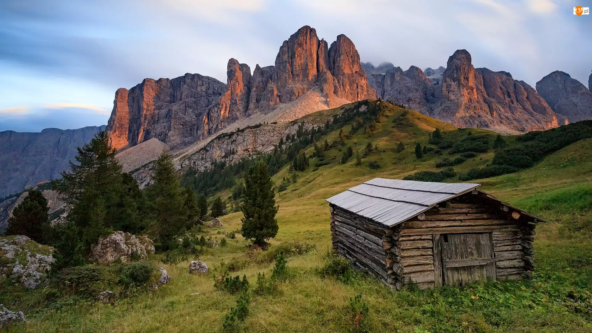 Szopa, Łąka, Góry, Włochy, Wzgórza, Dolomity