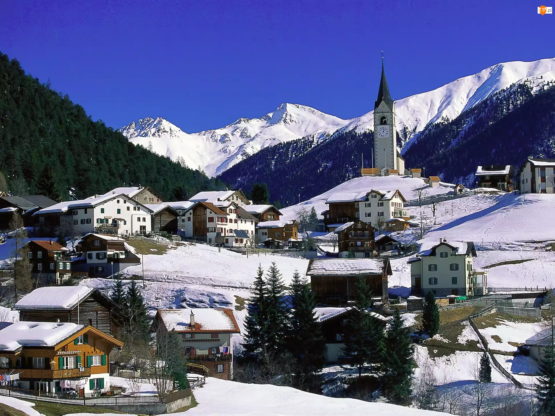 Szwajcaria, Góry, Domy, Lasy, Kościół