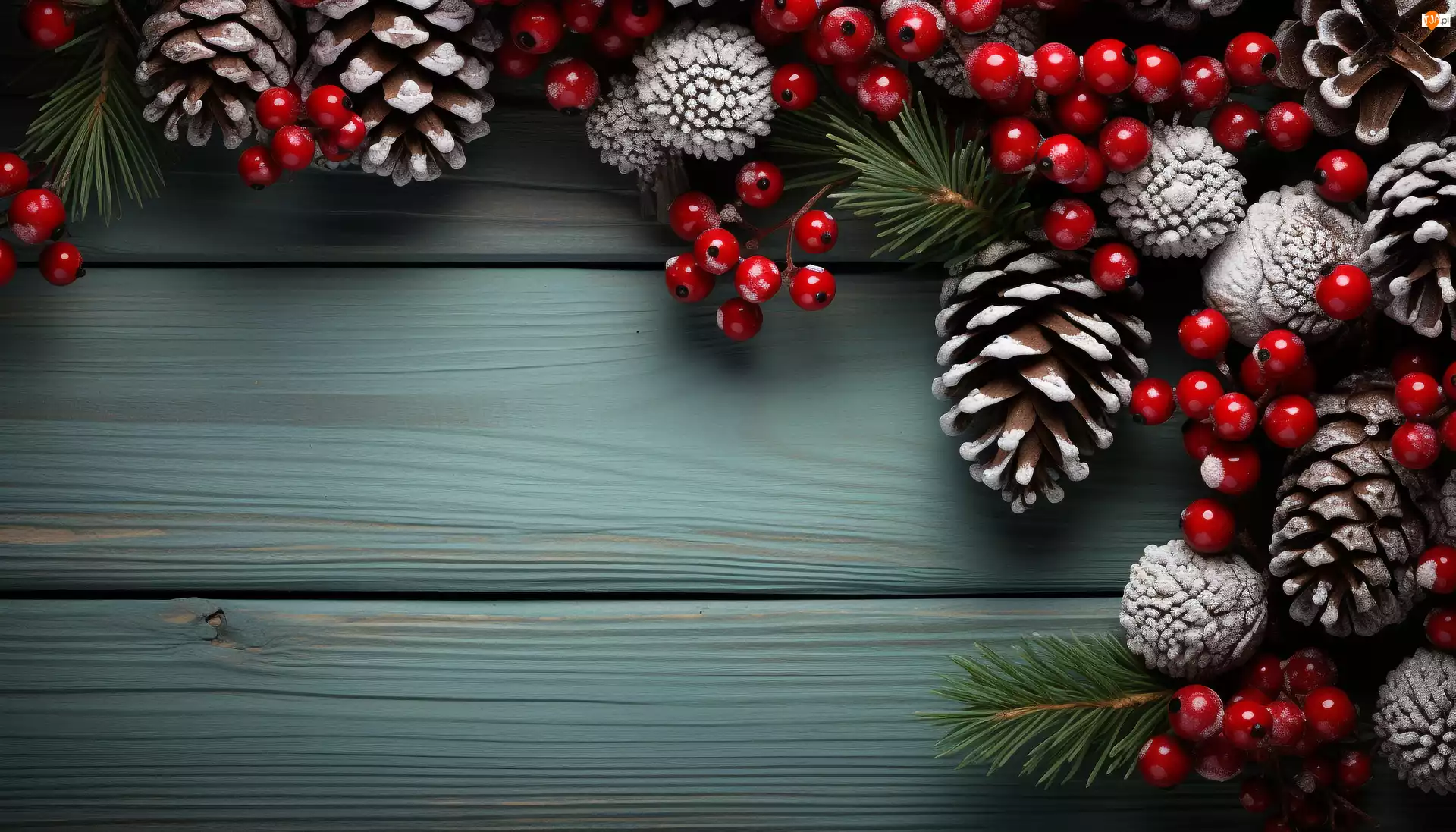 Szyszki, Gałązki, Owoce, Kompozycja, Czerwone, Deski