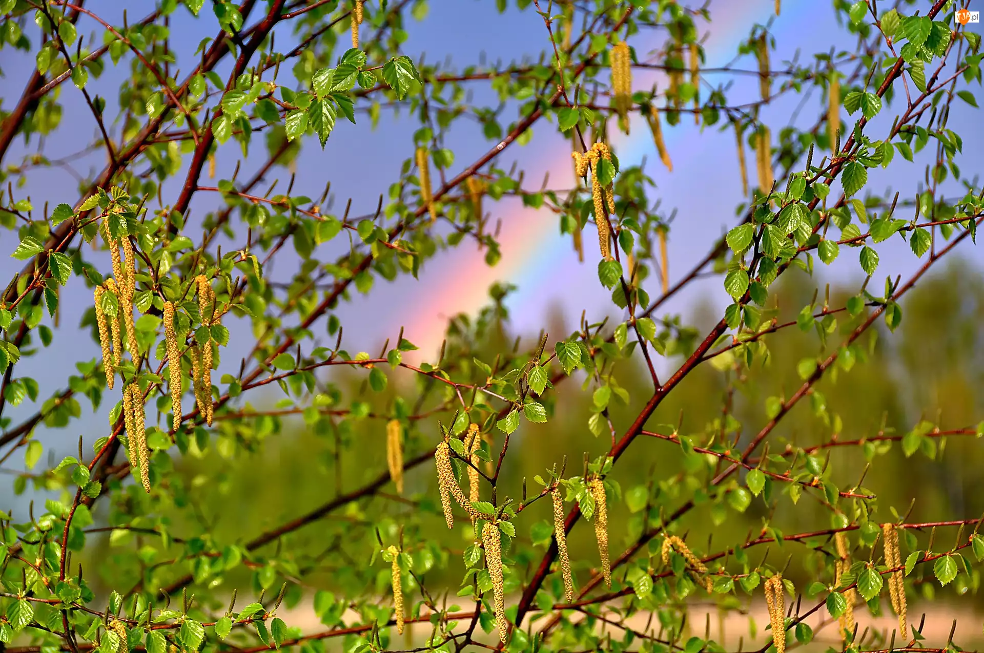Tęcza, Kwitnące, Drzewo, Brzozy