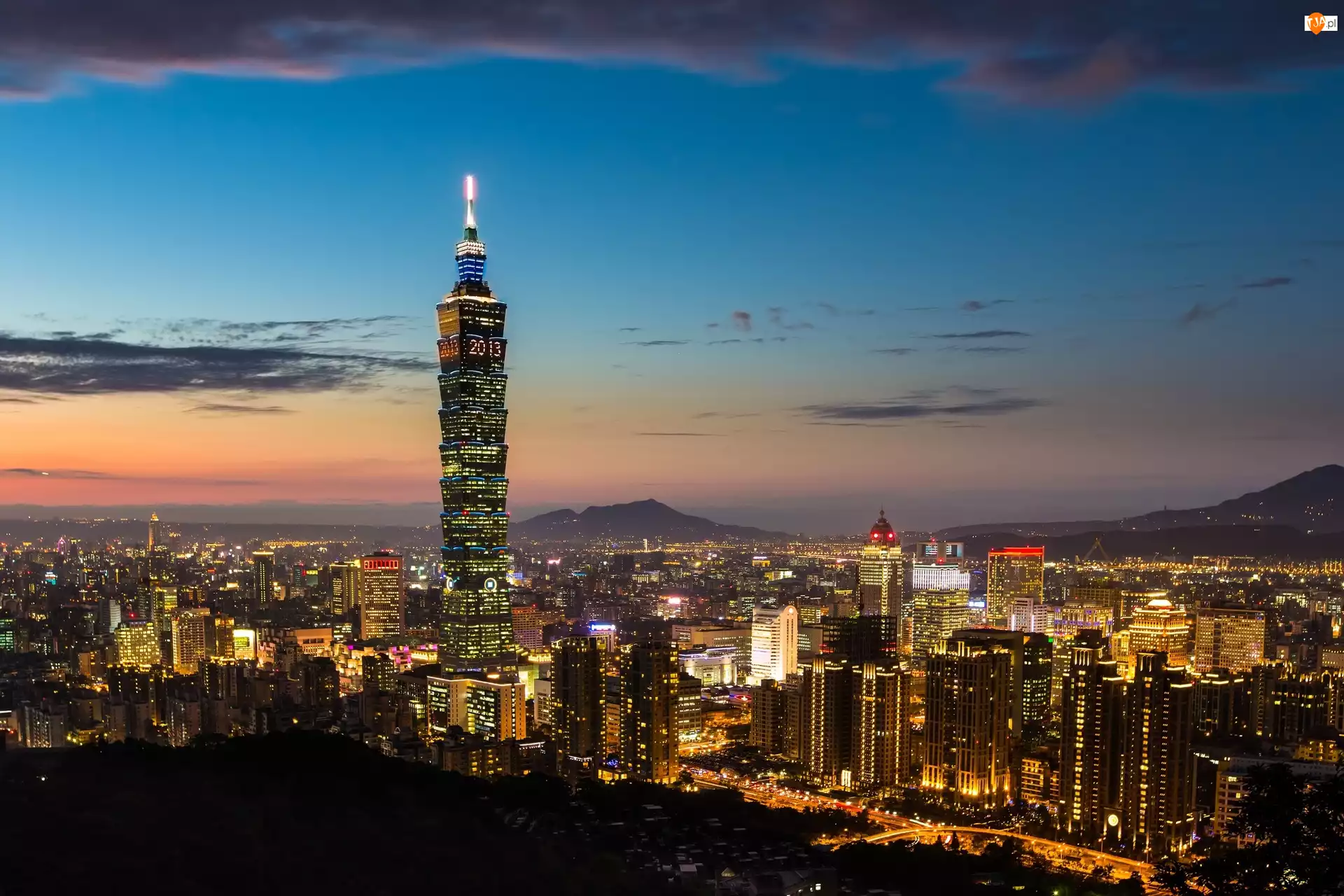 Tajwan, Miasto nocą, Taipei, Drapacze Chmur