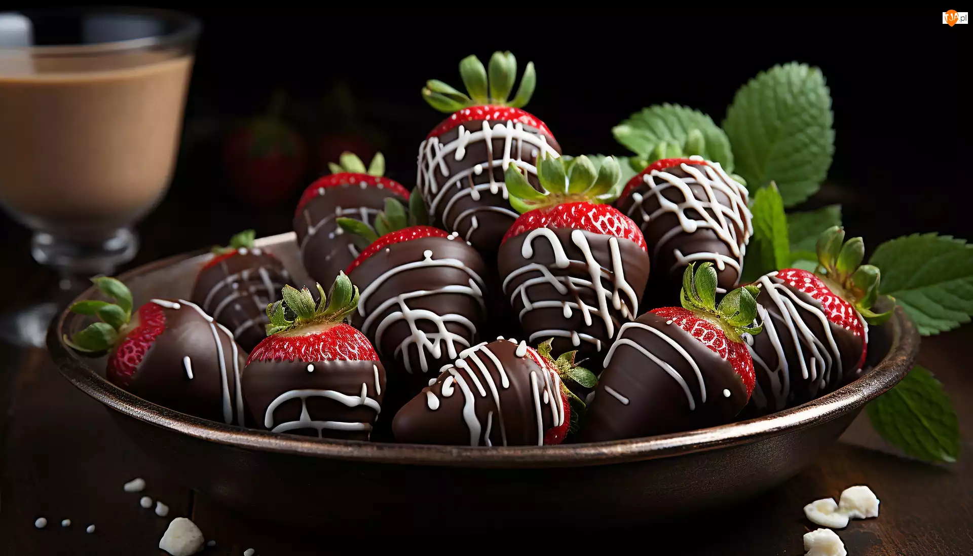 Talerz, Grafika, Czekolada, Truskawki, Deser
