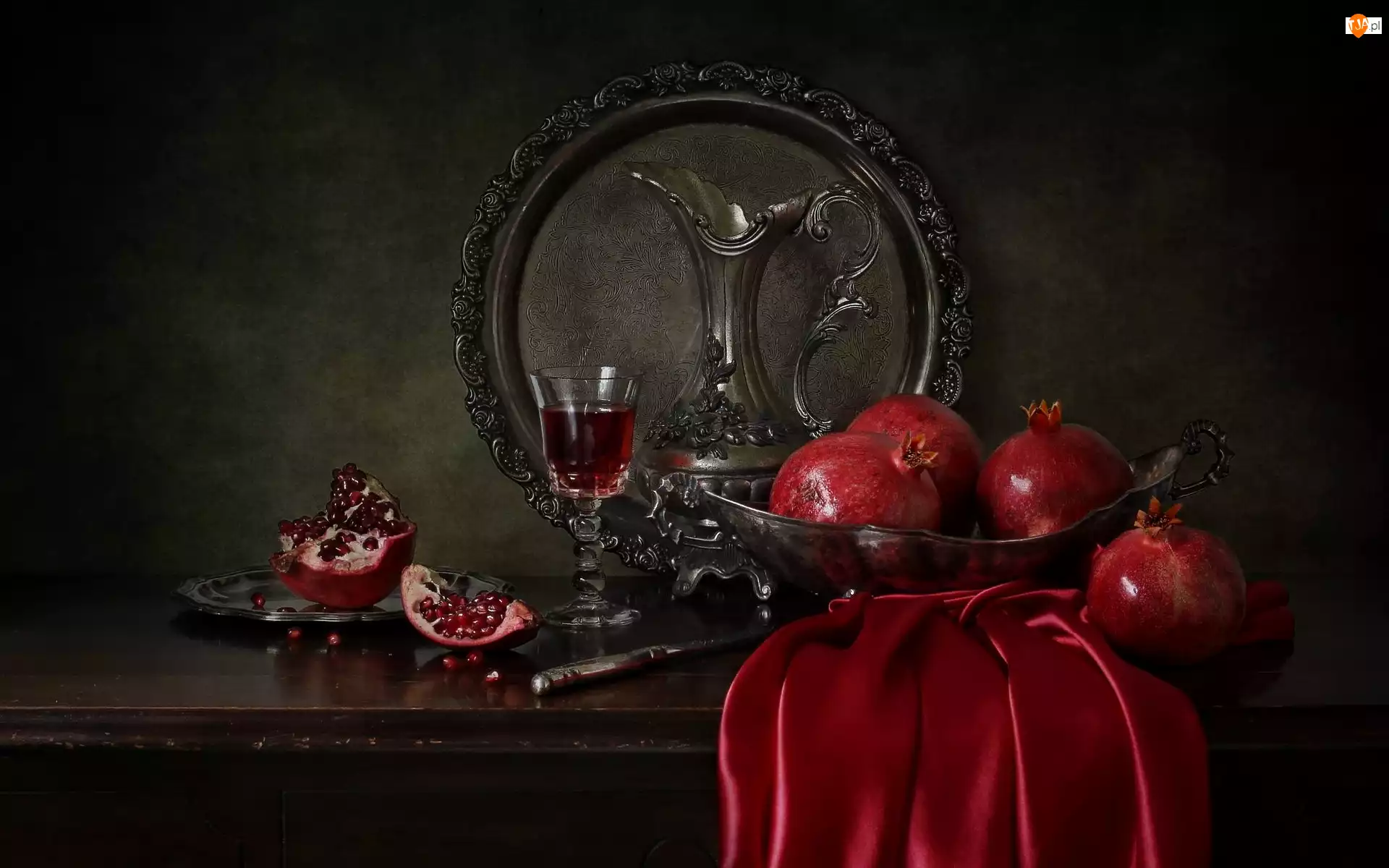 Talerz, Kompozycja, Kieliszek, Granaty, Dzban, Misa