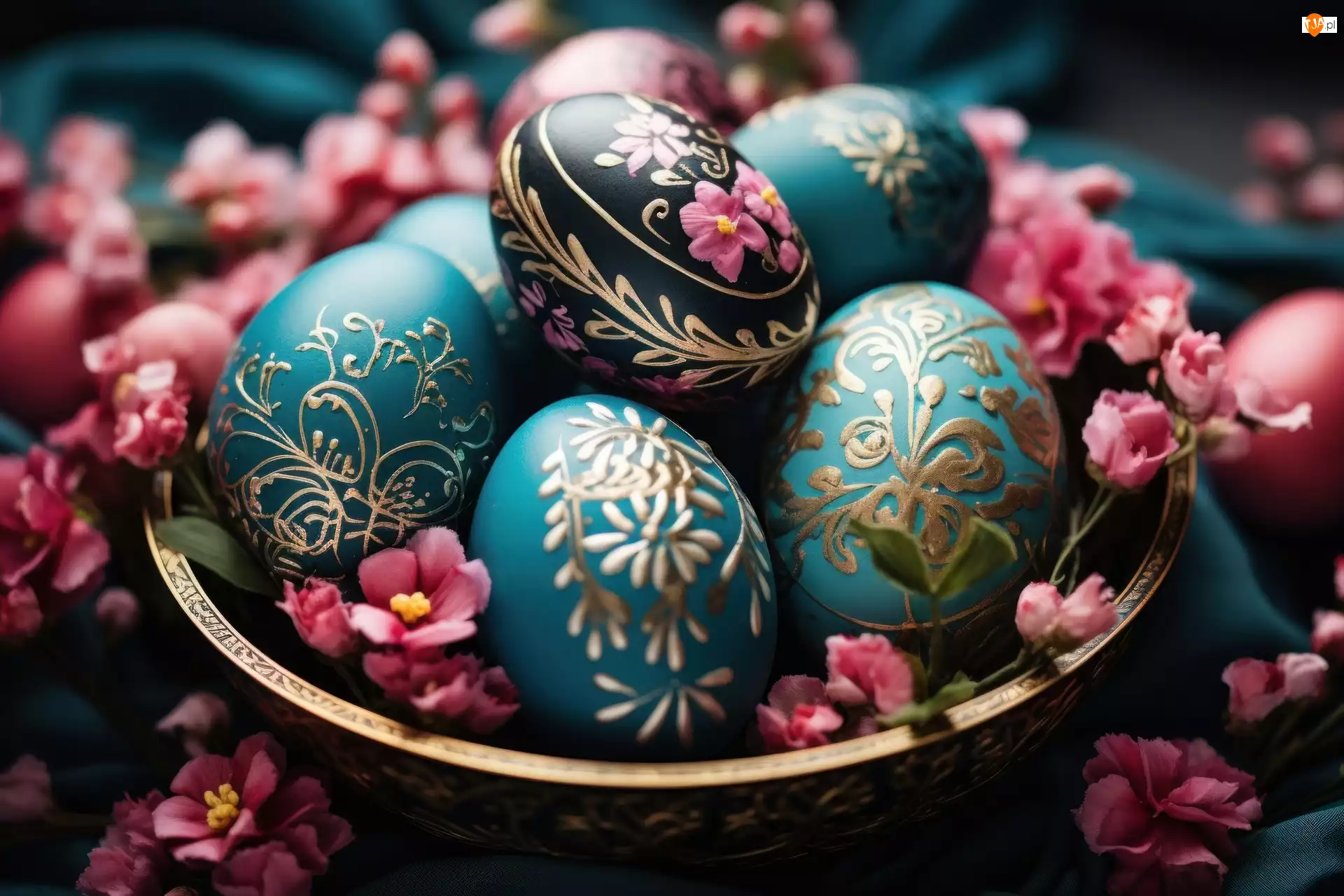 Talerz, Kwiaty, Pisanki, Wielkanoc, Różowe