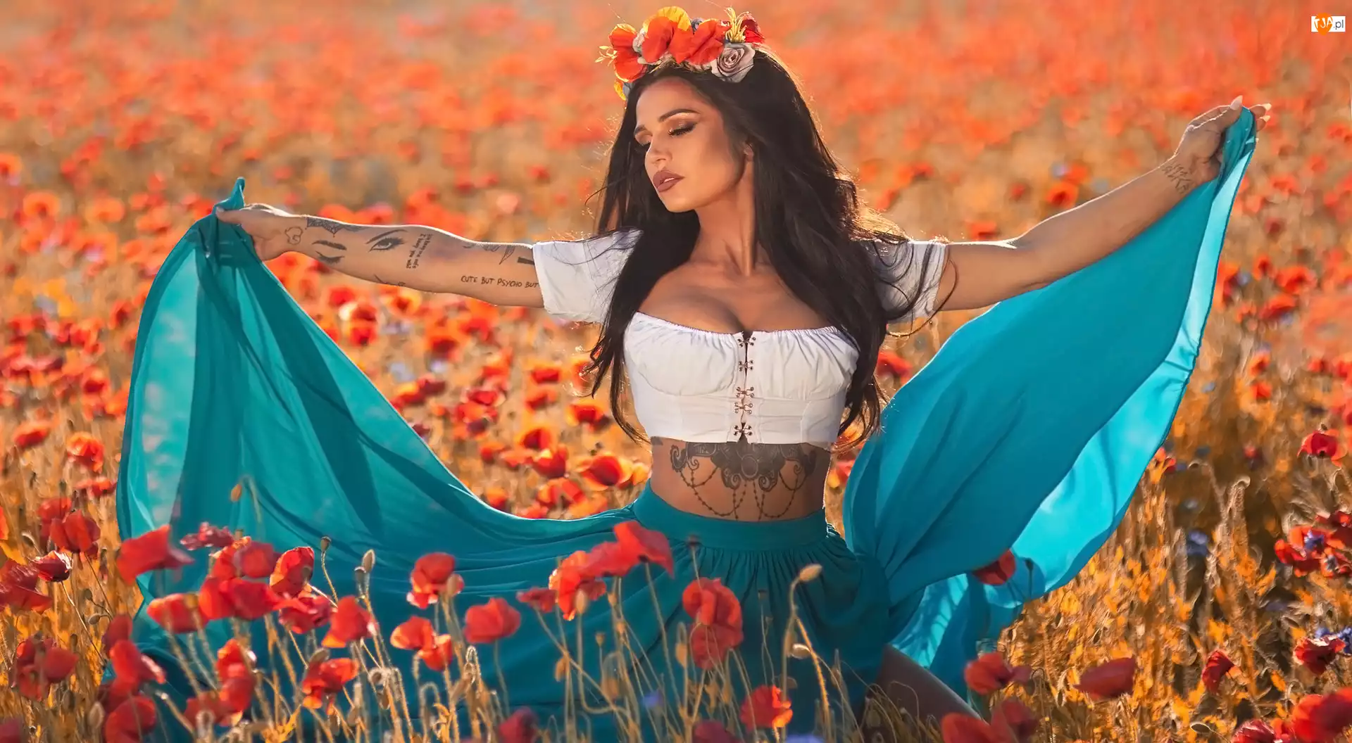Tatuaże, Kobieta, Kwiaty, Maki