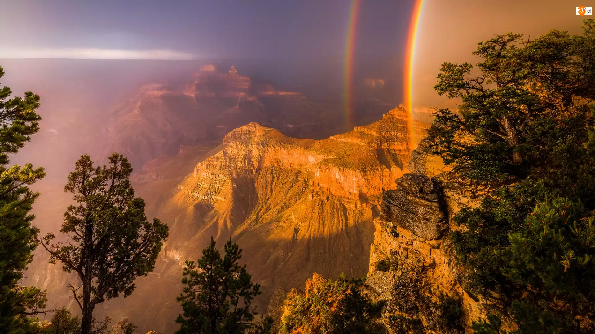 Arizona, Stany Zjednoczone, Wielki Kanion Kolorado, Drzewa, Park Narodowy, Tęcza