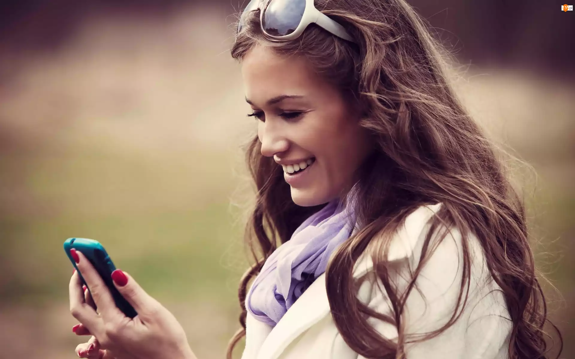 Telefon, Kobieta, Okulary, Modelka, Makijaż