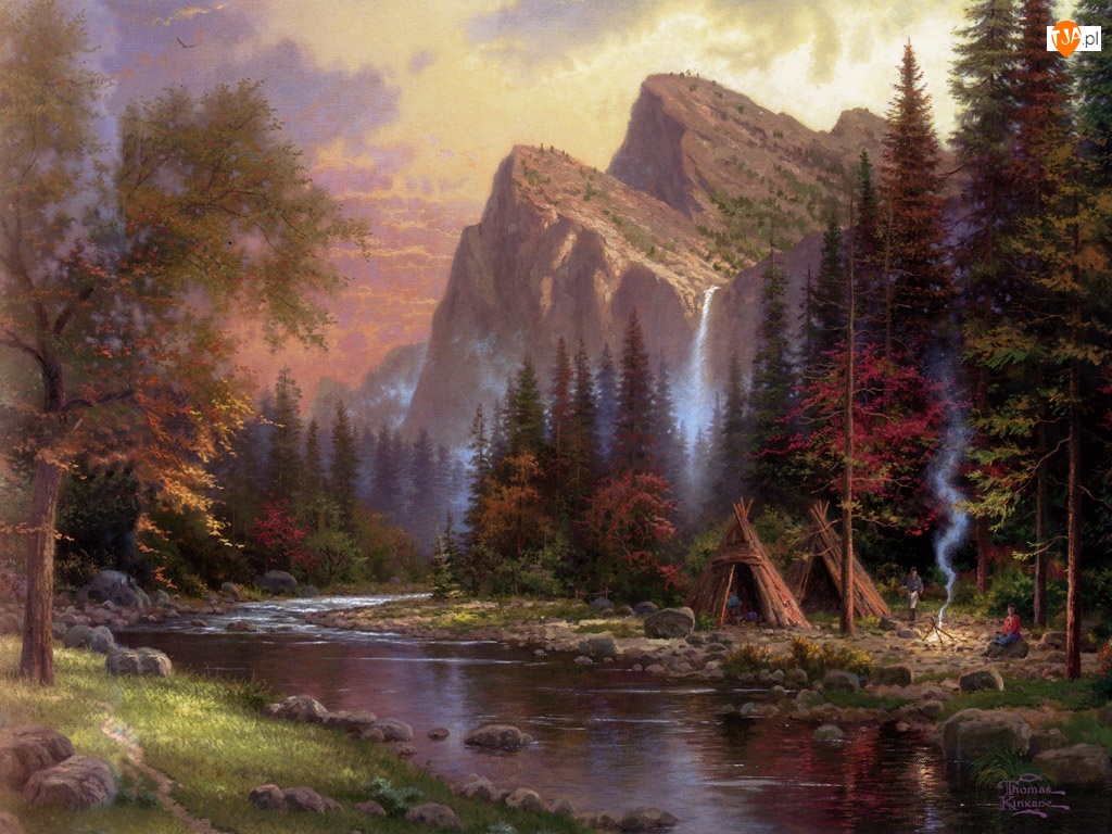 Thomas Kinkade, Góry, Las, Rzeka, Biwak