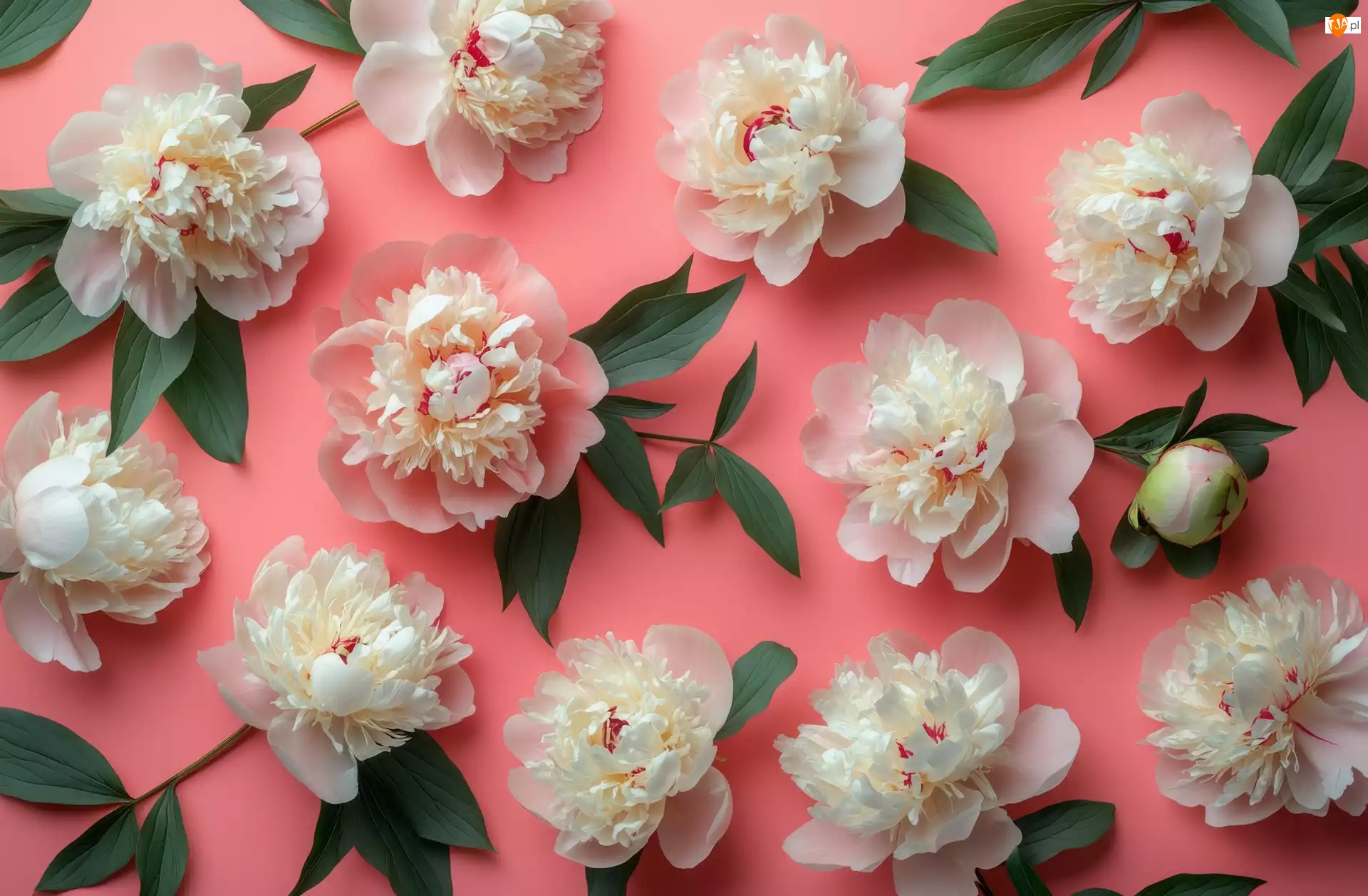 Tło, Białe, Piwonie, Listki