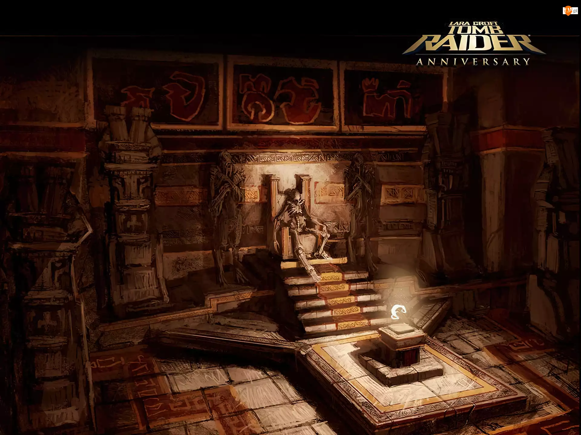 Tomb Raider Anniversary, tron, szkielet, schody, kościotrup