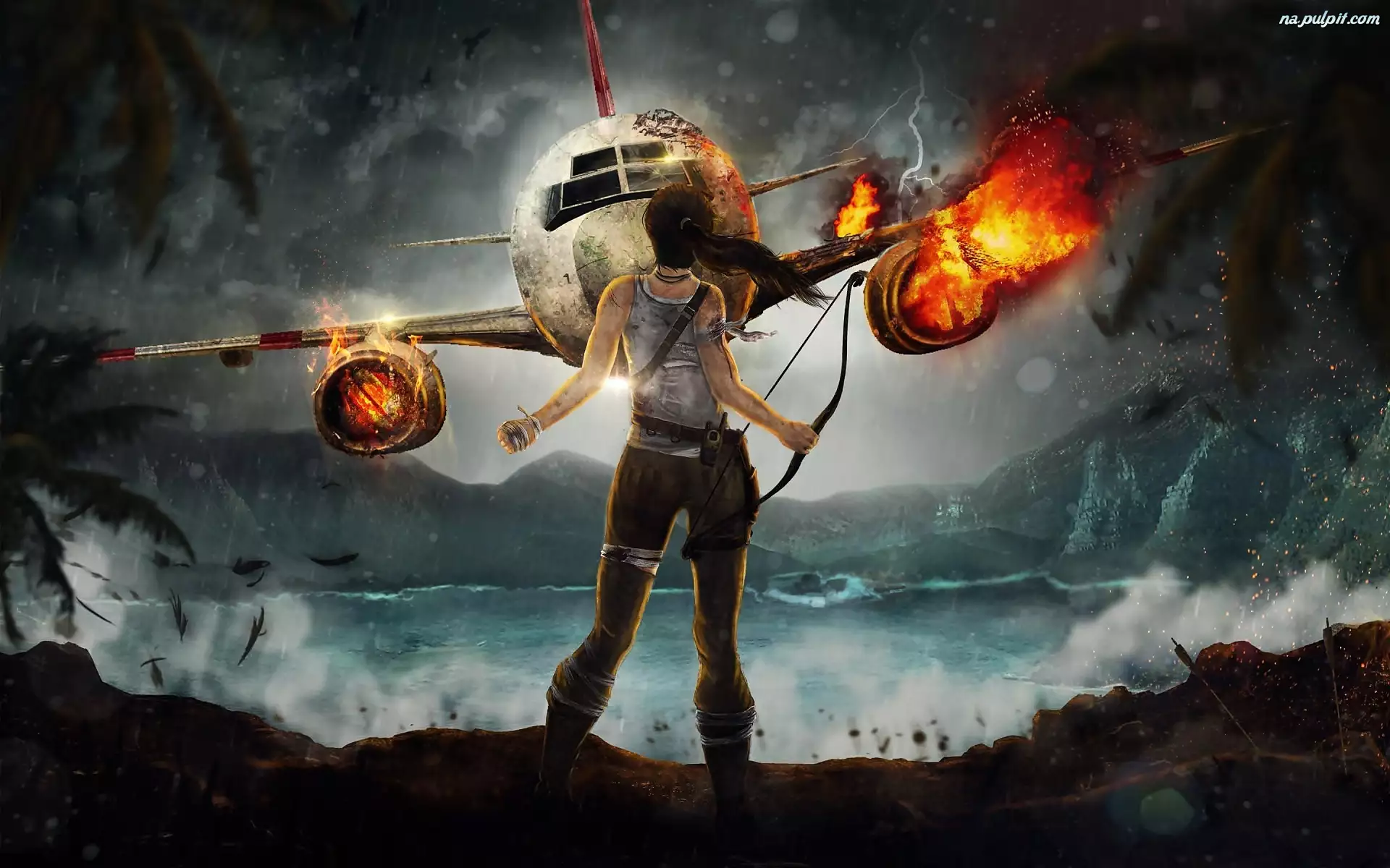 Tomb Raider, Samolot, Ogień, Lara Croft