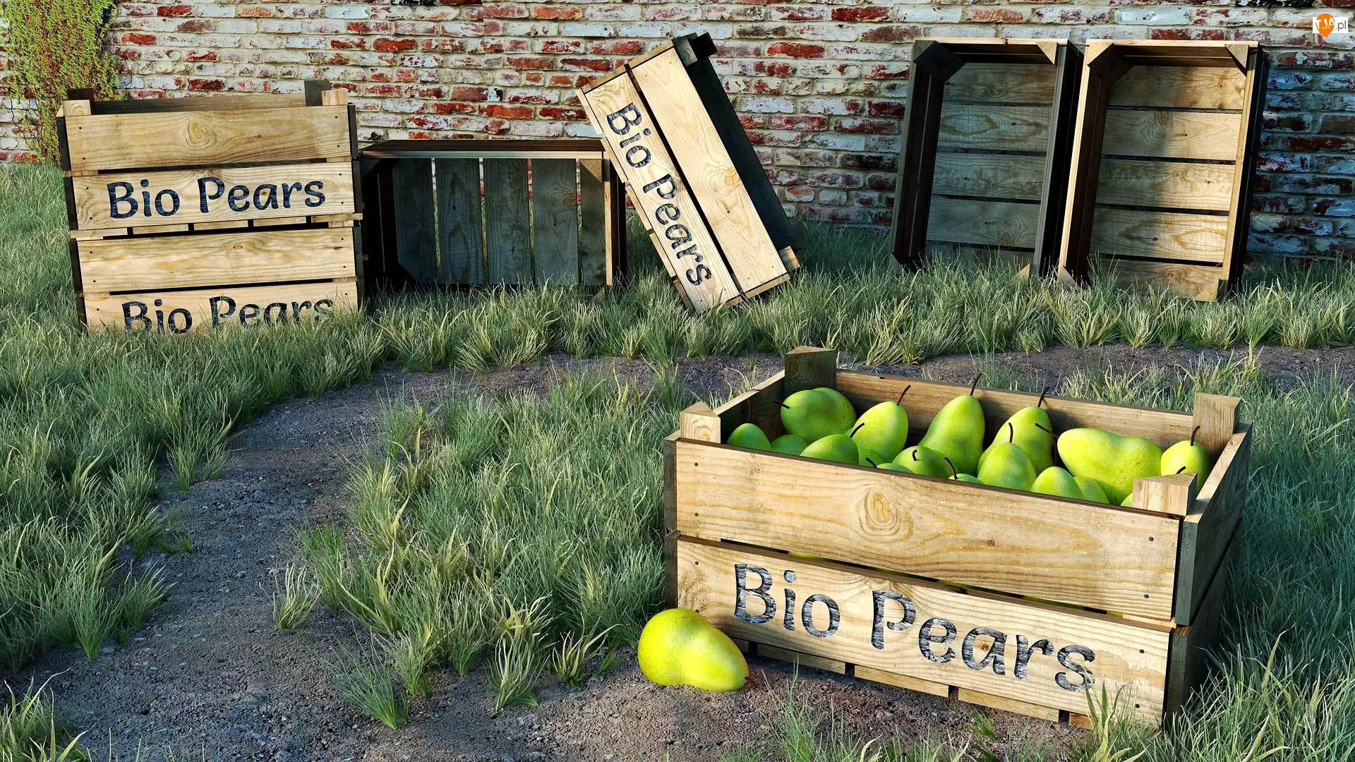 Trawa, 2D, Skrzynki, Gruszki, Mur
