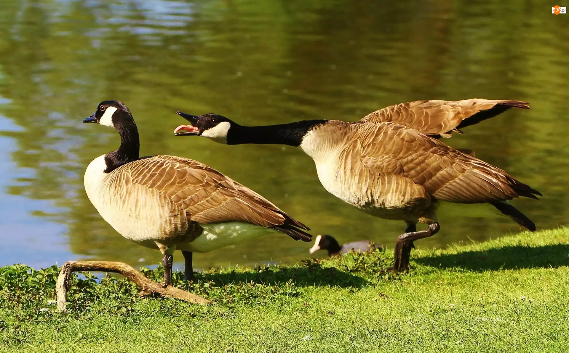 Trawa, Gęsi, Para, Woda