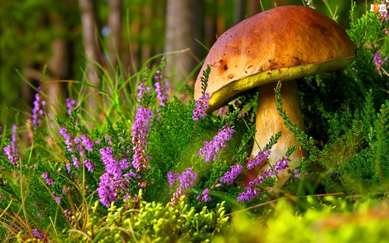 Trawa, Jesień, Prawdziwek, Grzyb, Wrzos