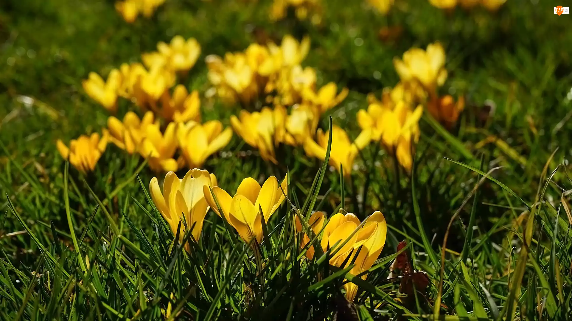 Trawa, Kwiaty, Krokusy, Żółte