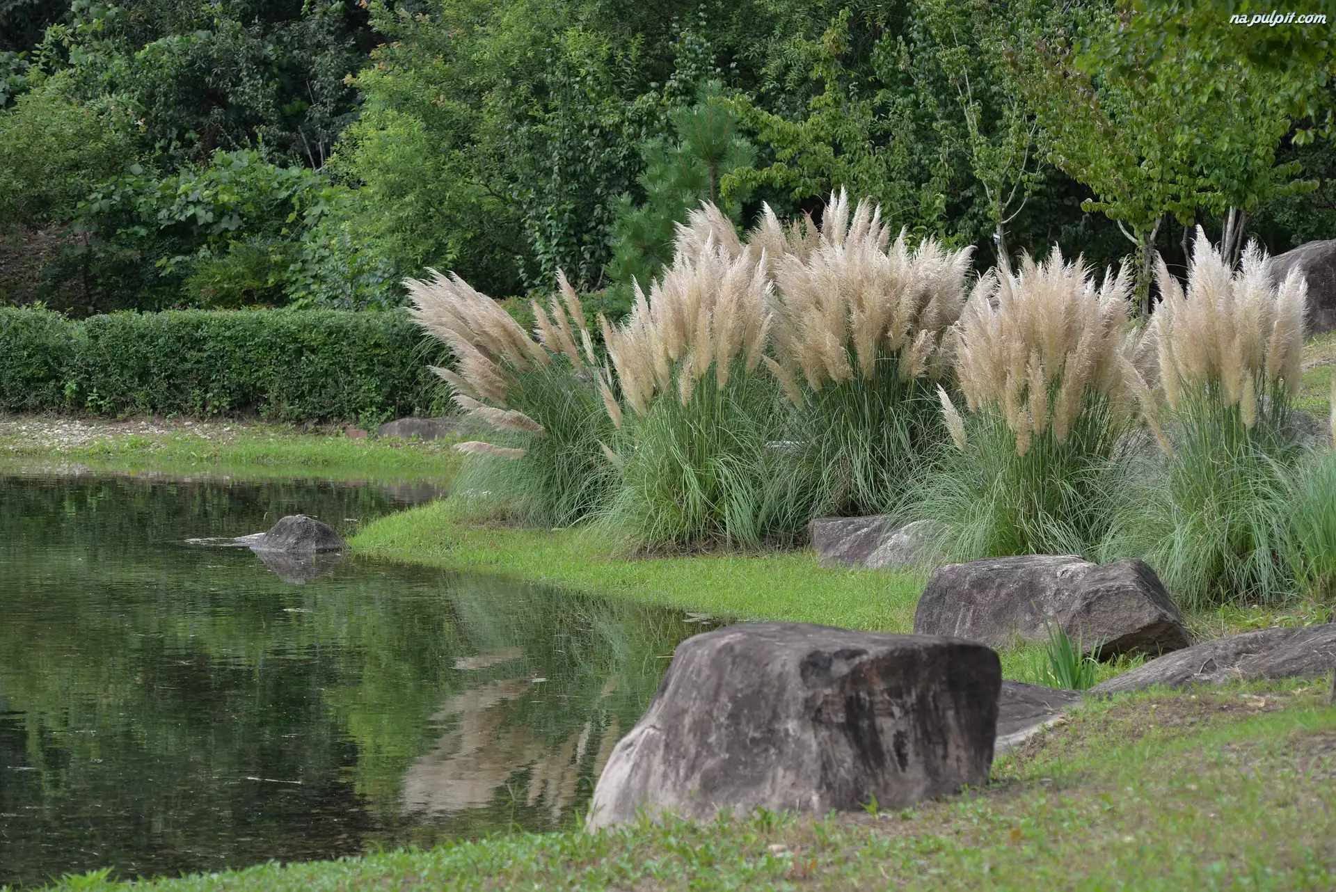Park, Trawa pampasowa, Staw