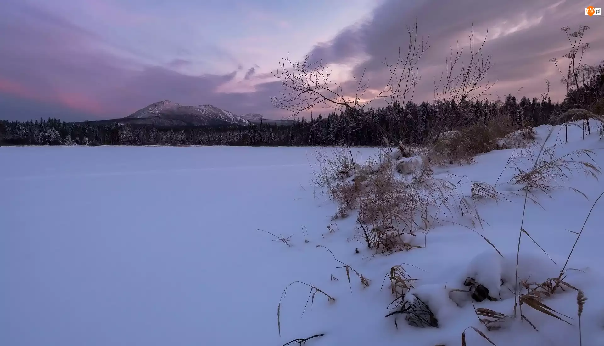 Trawa w śniegu