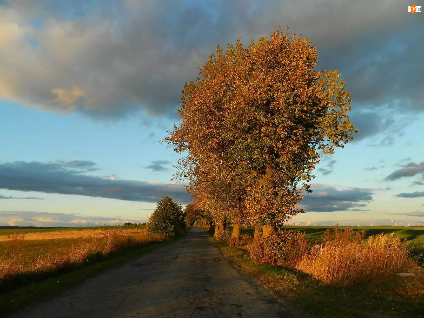 Trawy, Jesień, Drzewa, Droga, Zeschłe