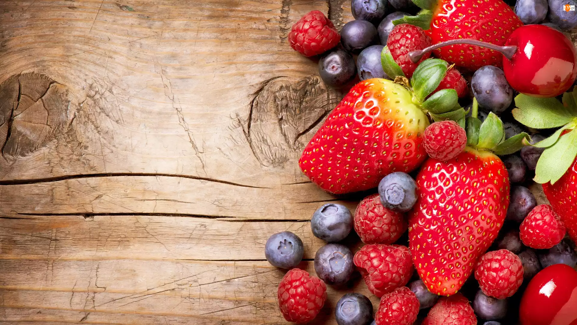 Borówki, Deski, Truskawki, Owoce, Maliny