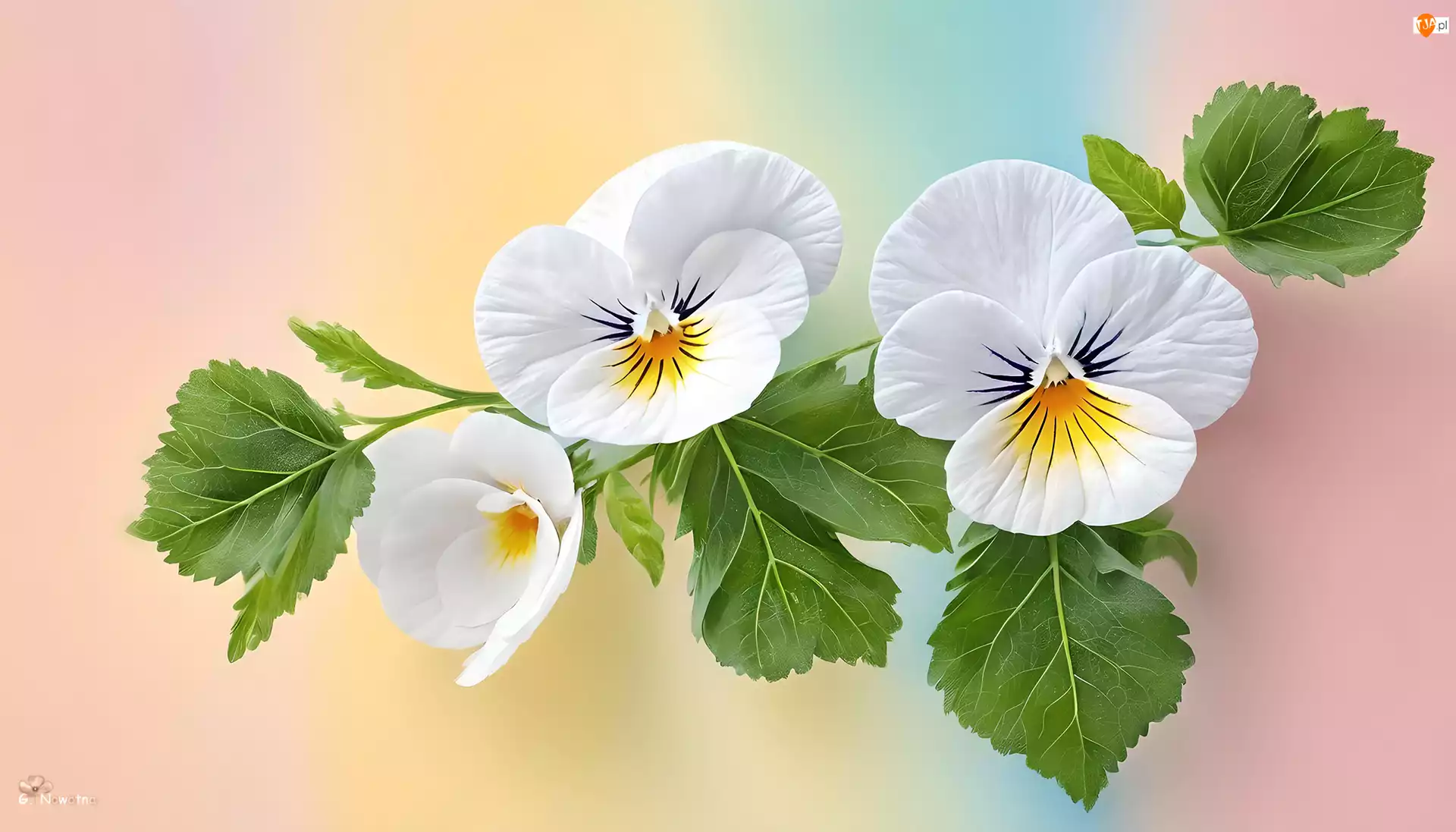 Bratki, Grafika, Białe, Trzy, Kwiaty