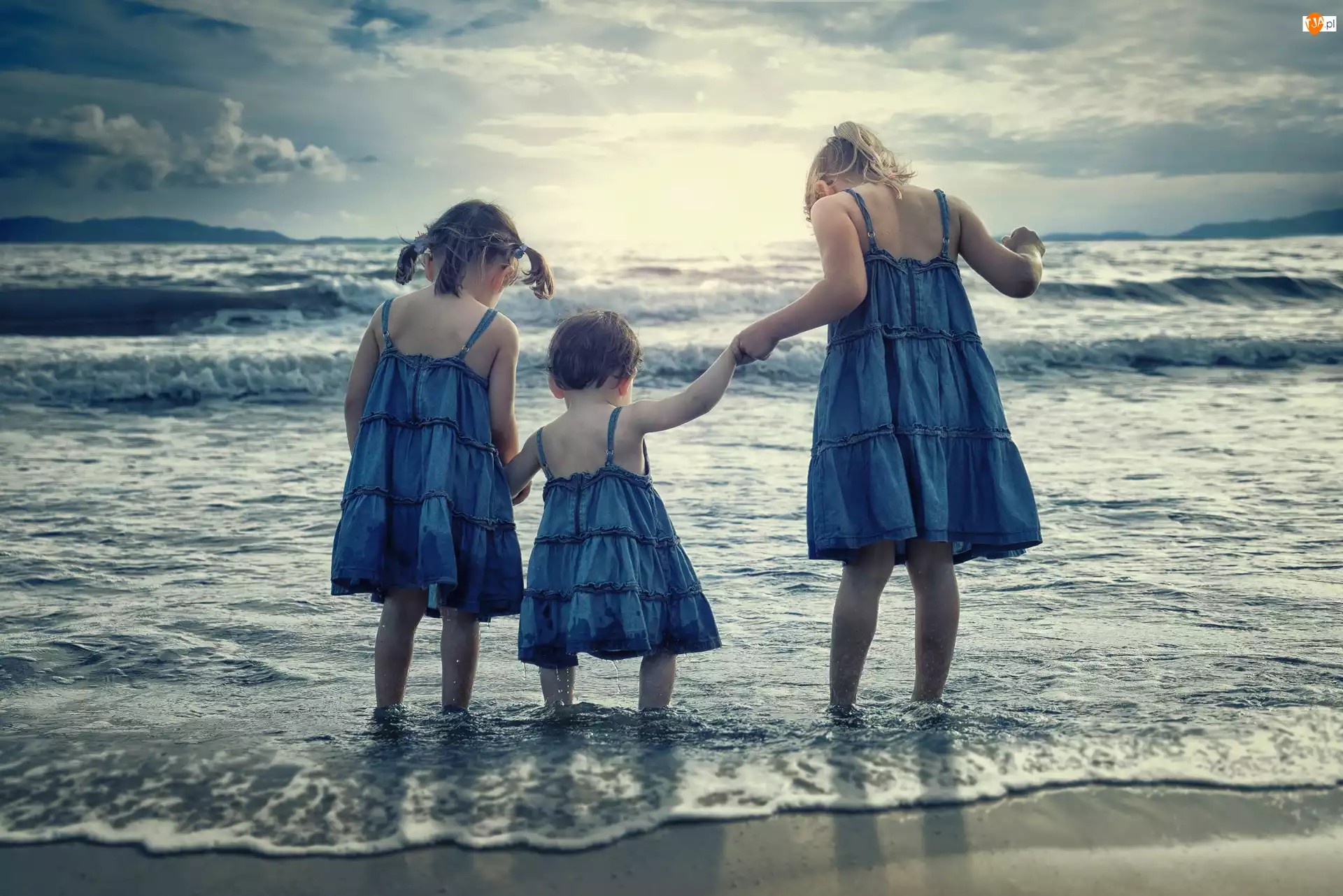 Trzy, Fale, Dziewczynki, Morze