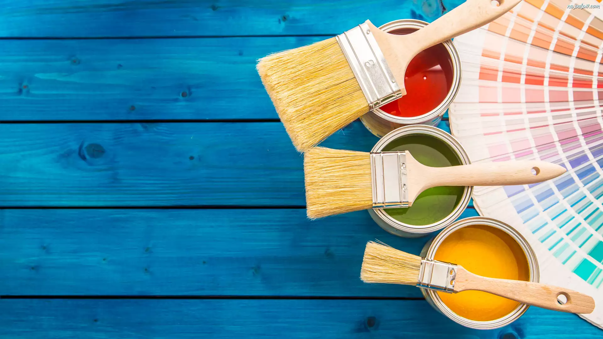 Kolory, Deski, Pędzle, Farby, Niebieskie