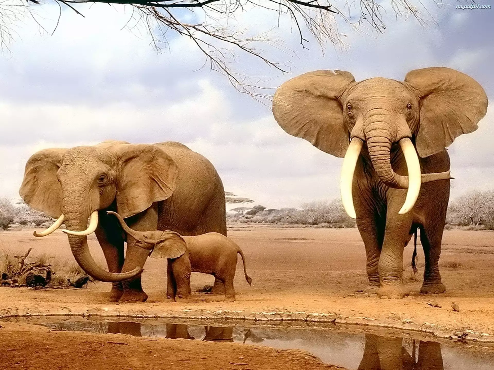 Trzy, Wodopój, Słonie, Rodzina