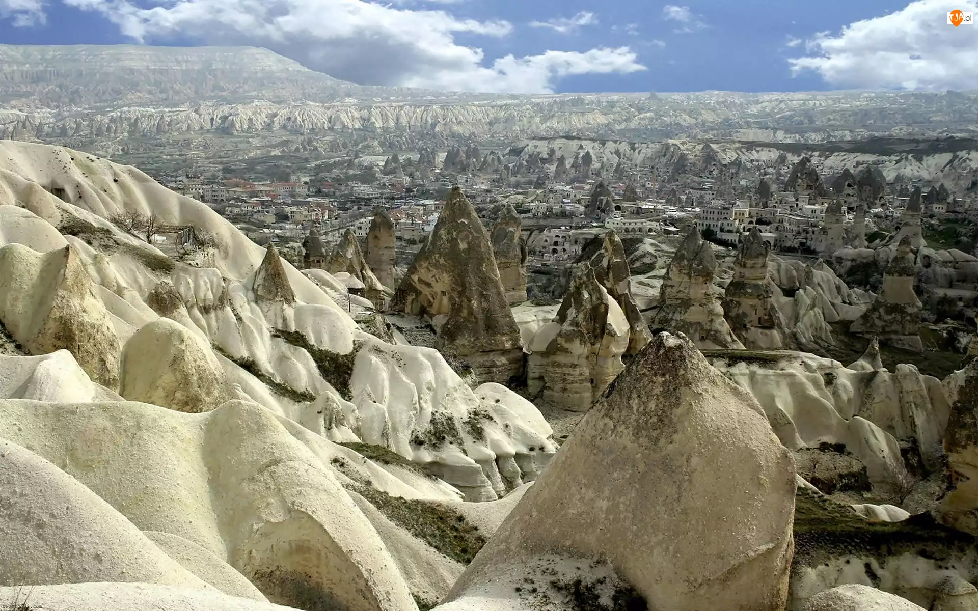 Tufowe, Panorama, Kapadocja, Miasta, Skały, Chmur