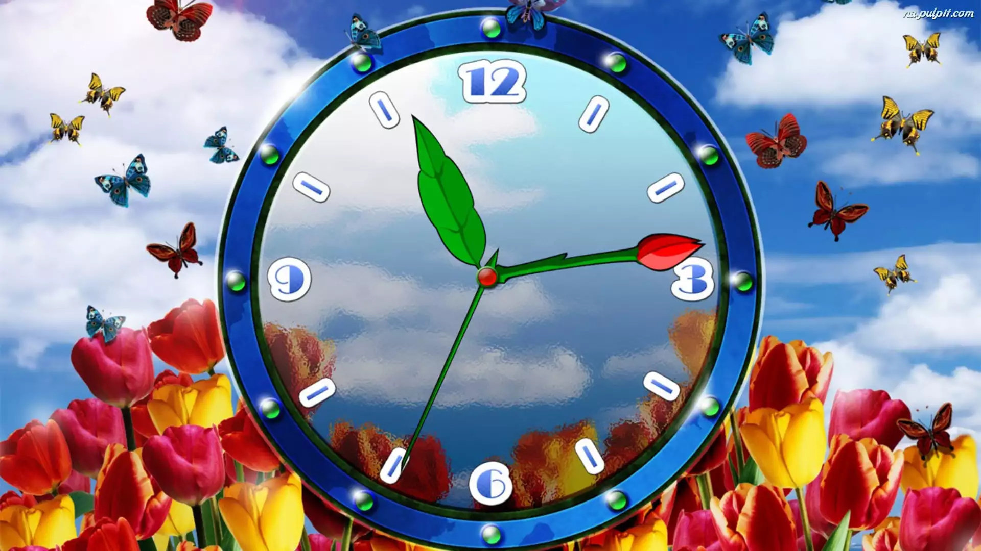 Tulipany, Grafika 2D, Zegar, Motyle
