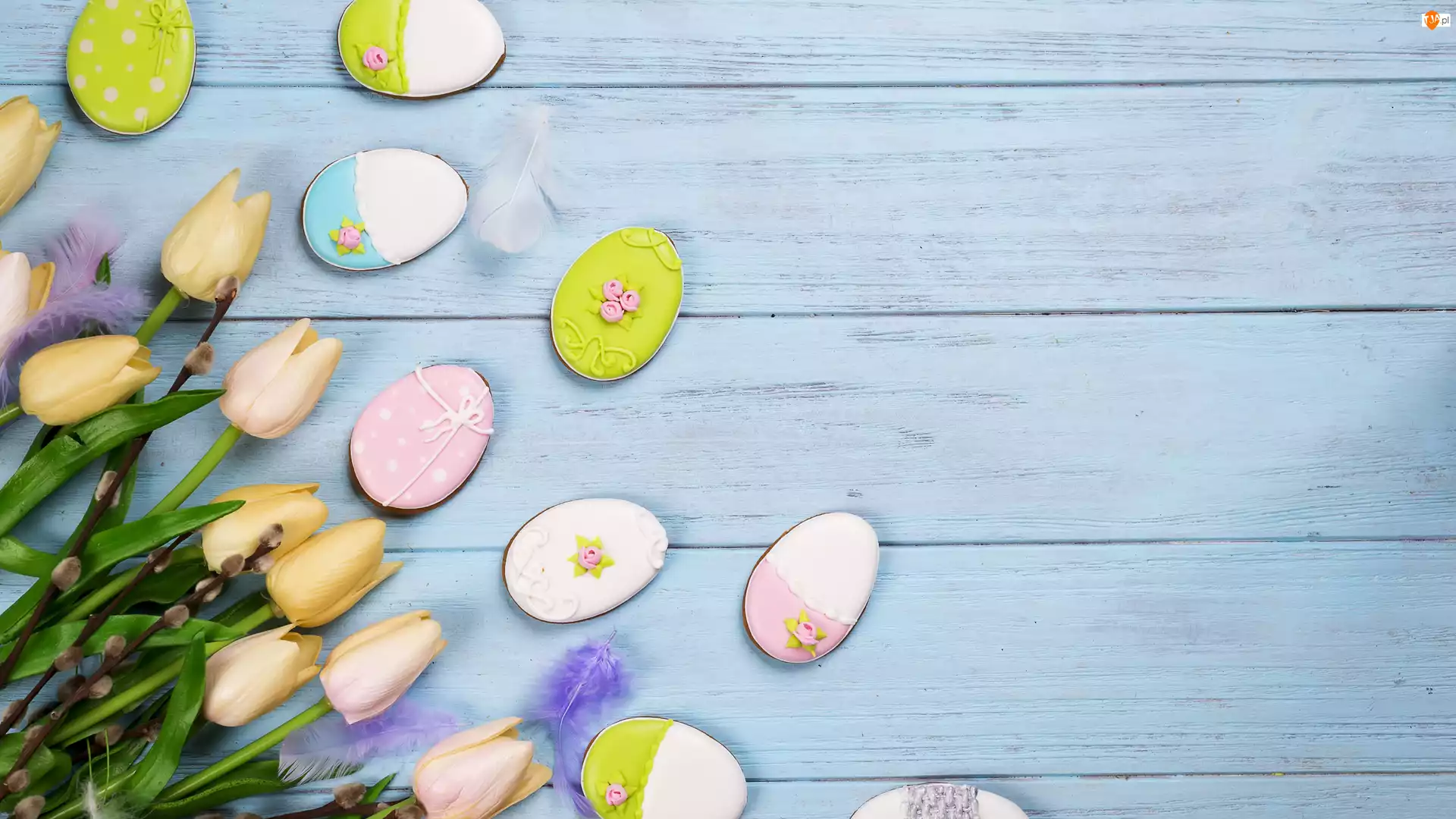 Ciasteczka, Wielkanoc, Tulipany, Deski, Pisanki, Bazie