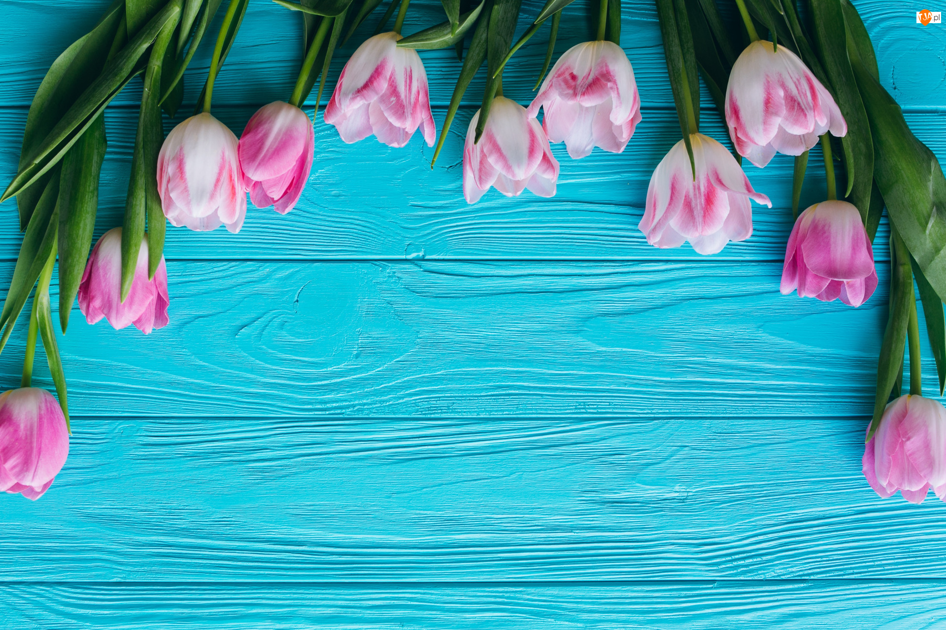 Tulipany na niebieskich deskach
