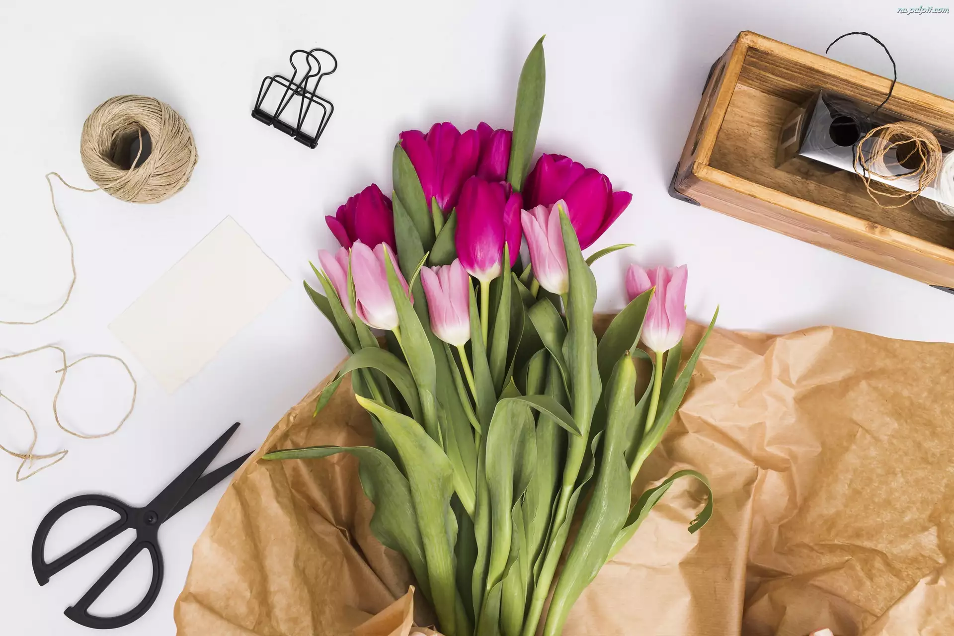 Tulipany, Sznurek, Bukiet, Kwiaty, Nożyczki