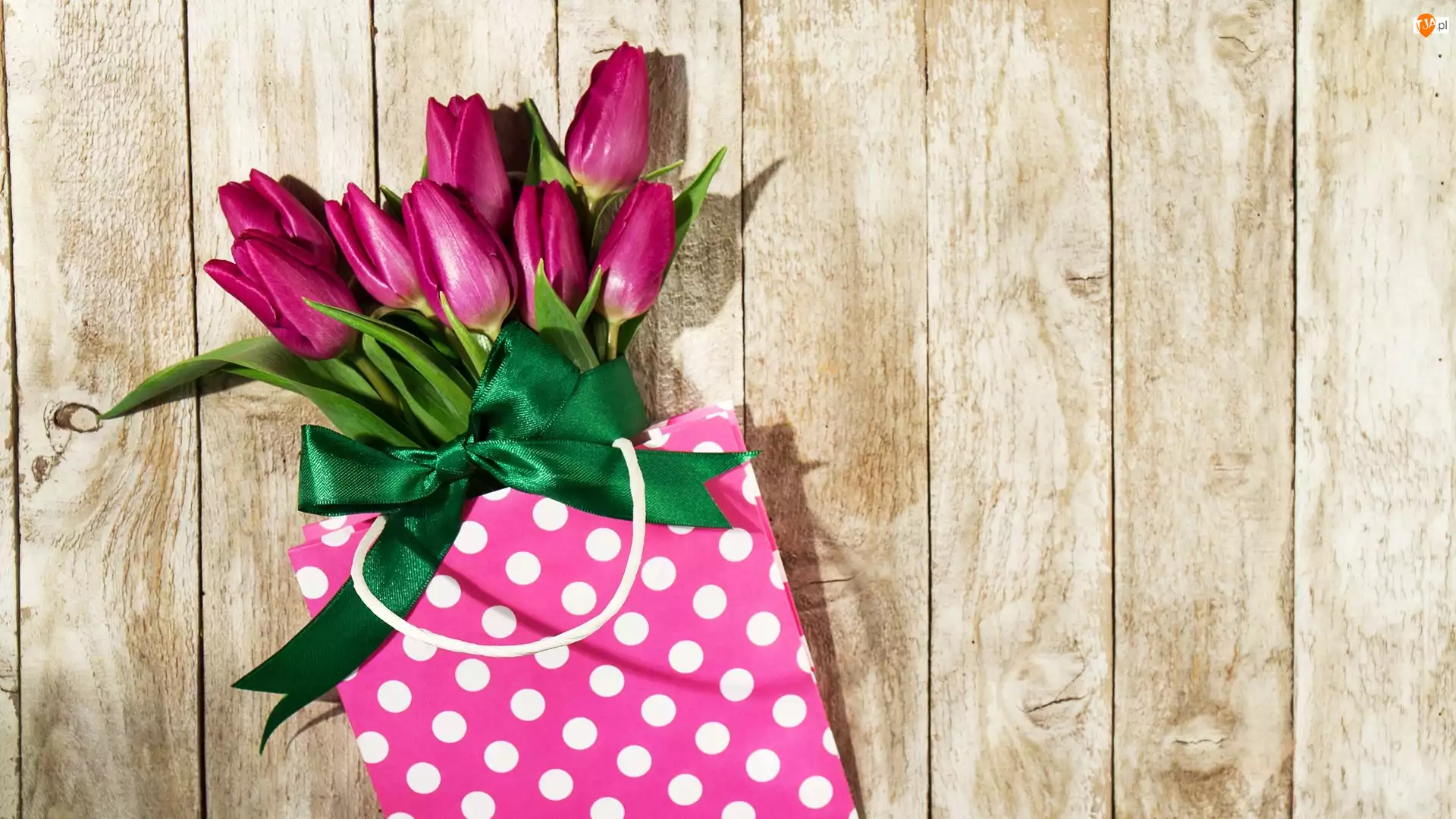 Wstążka, Torebka, Zielona, Tulipany, Ozdobna