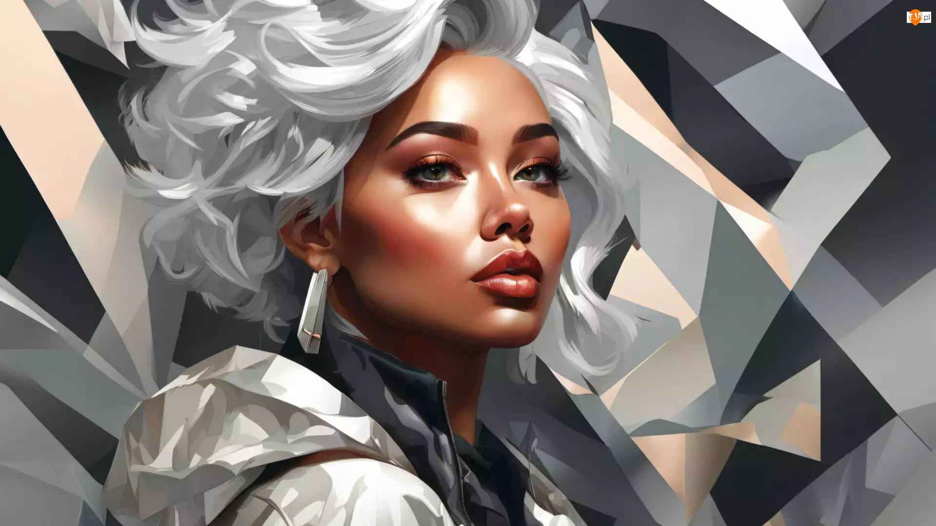Twarz, Kobieta, Geometryczne, Grafika, Wzory, Spojrzenie, Blondynka