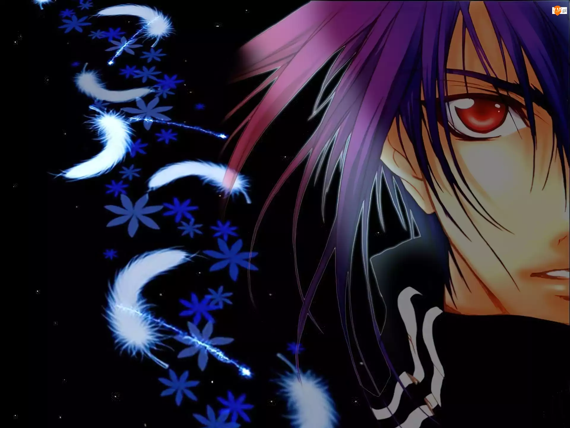 kwiaty, twarz, pióro, D N Angel, oko