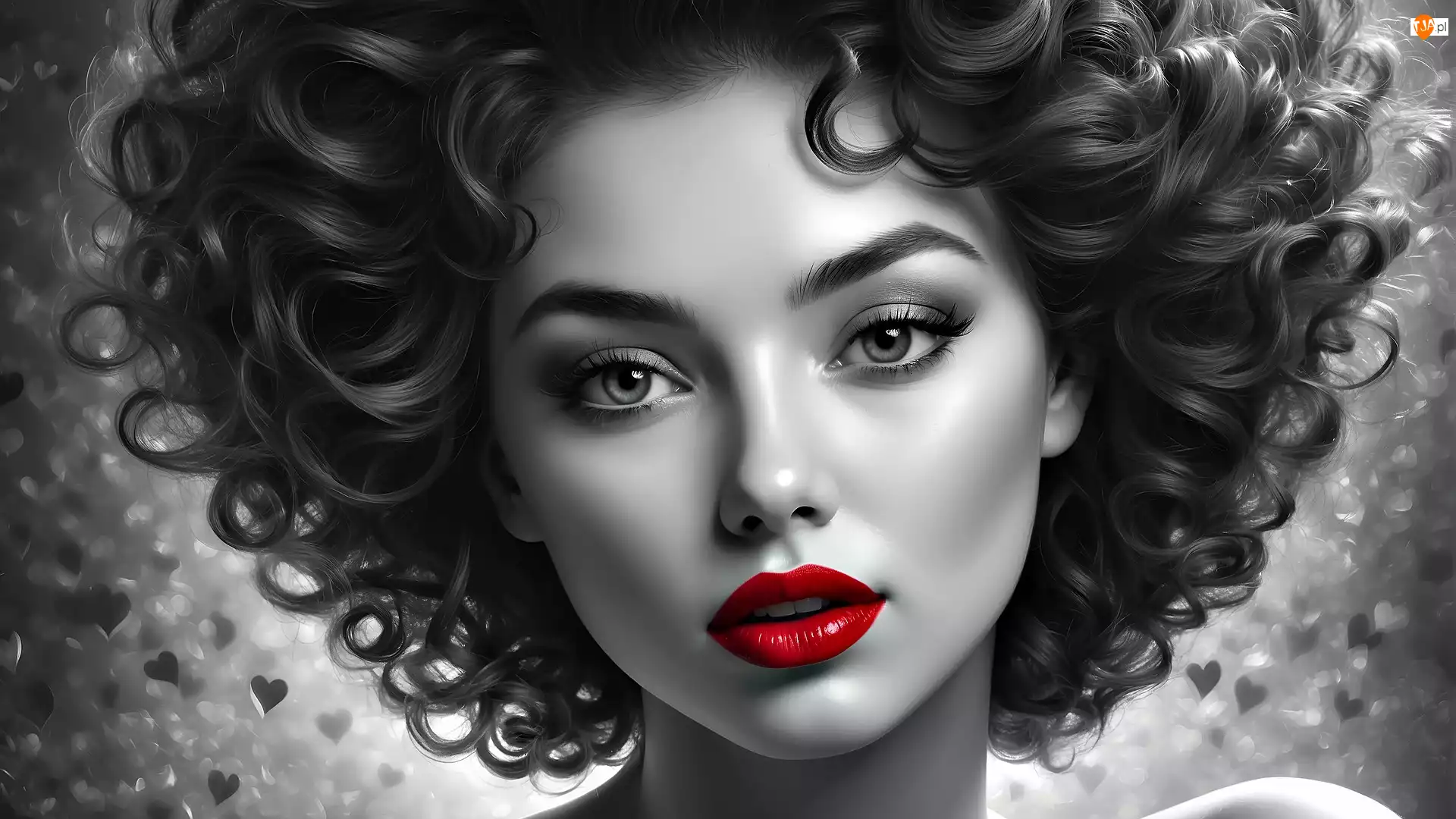 Twarz, Kobieta, Czerwone, Grafika, Loki, Usta
