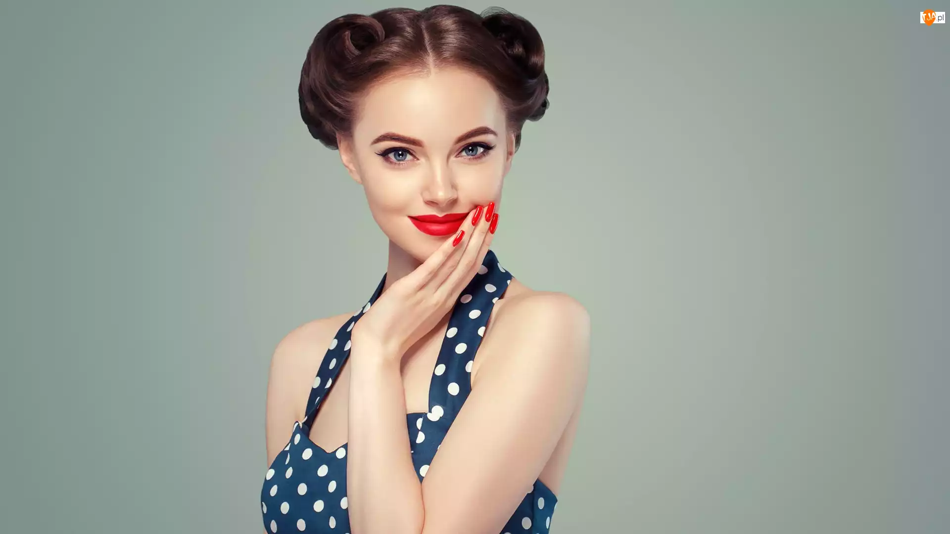 Twarz, Makijaż, Groszki, Kobieta, Sukienka, Paznokcie, Czerwone