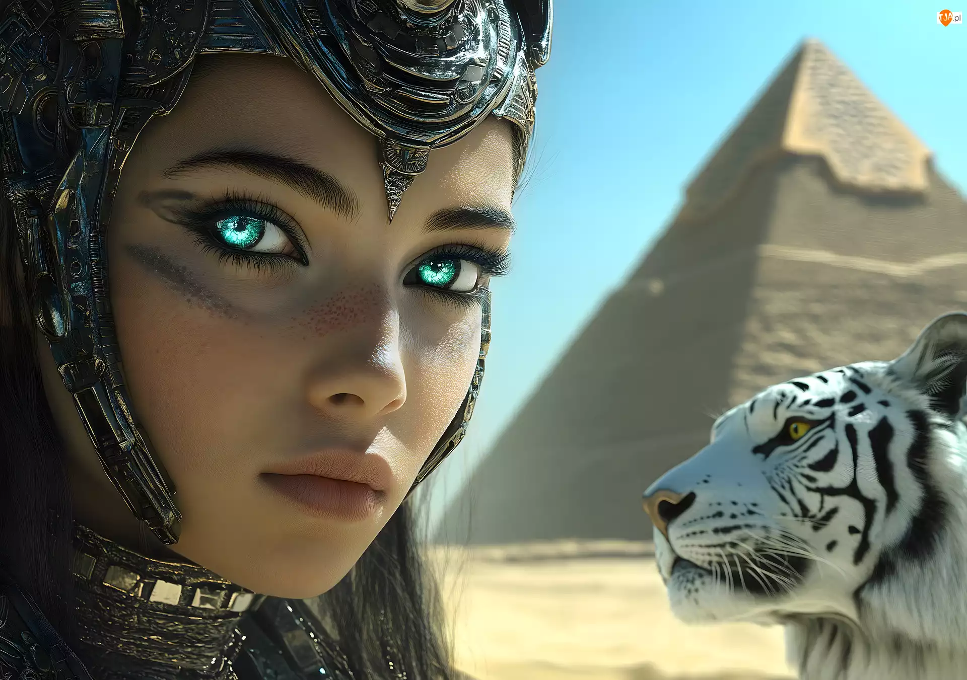 Tygrys, Grafika, Hełm, Kobieta, Piramidy