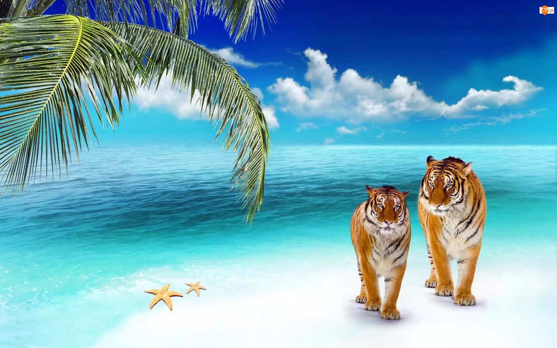 Tygrysy, Ocean, Plaża, Palma