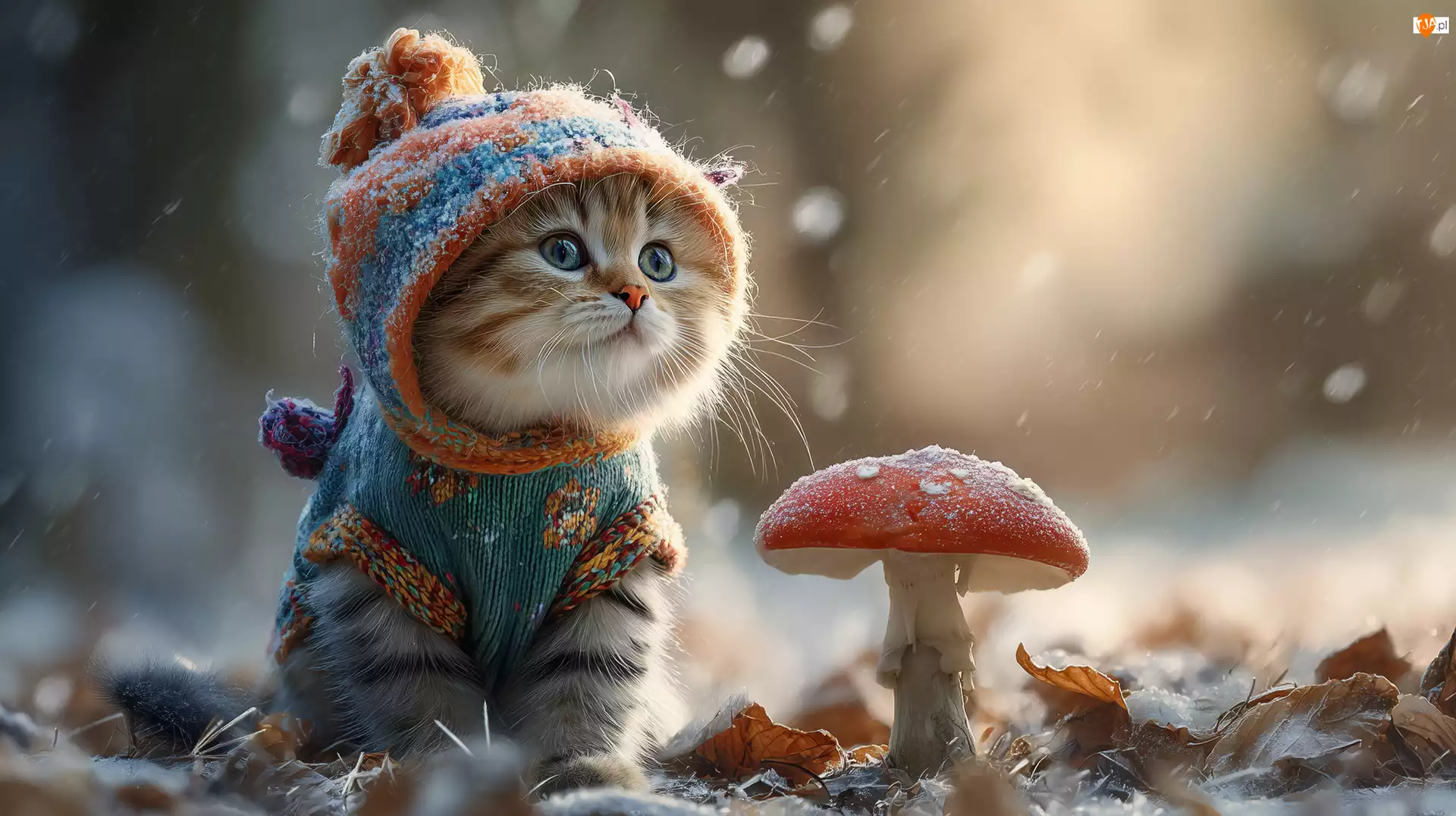 Ubranko, Kot, Grzyb, Grafika AI, Muchomor, Szron