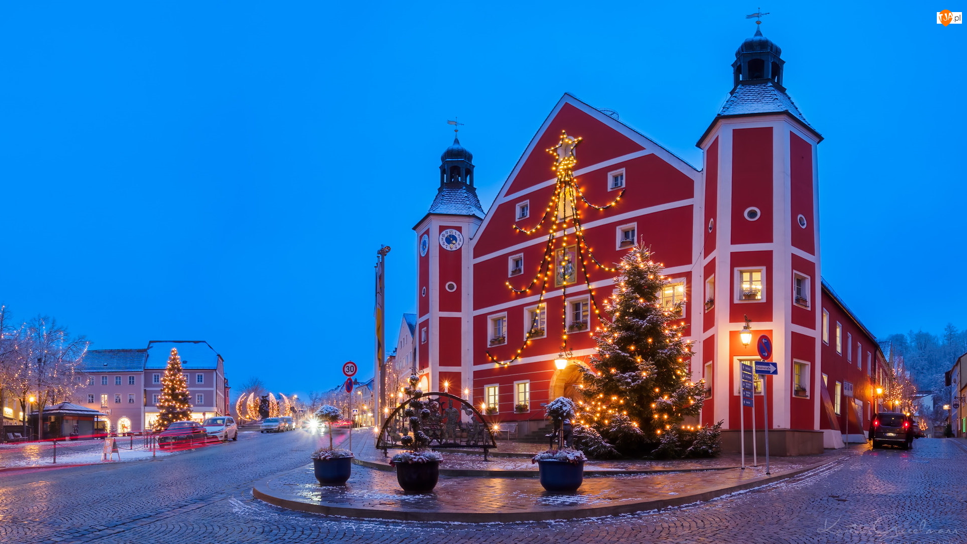 Niemcy, Dom, Bawaria, Ulica, Burglengenfeld, Ratusz, Boże Narodzenie, Budynek, Choinki