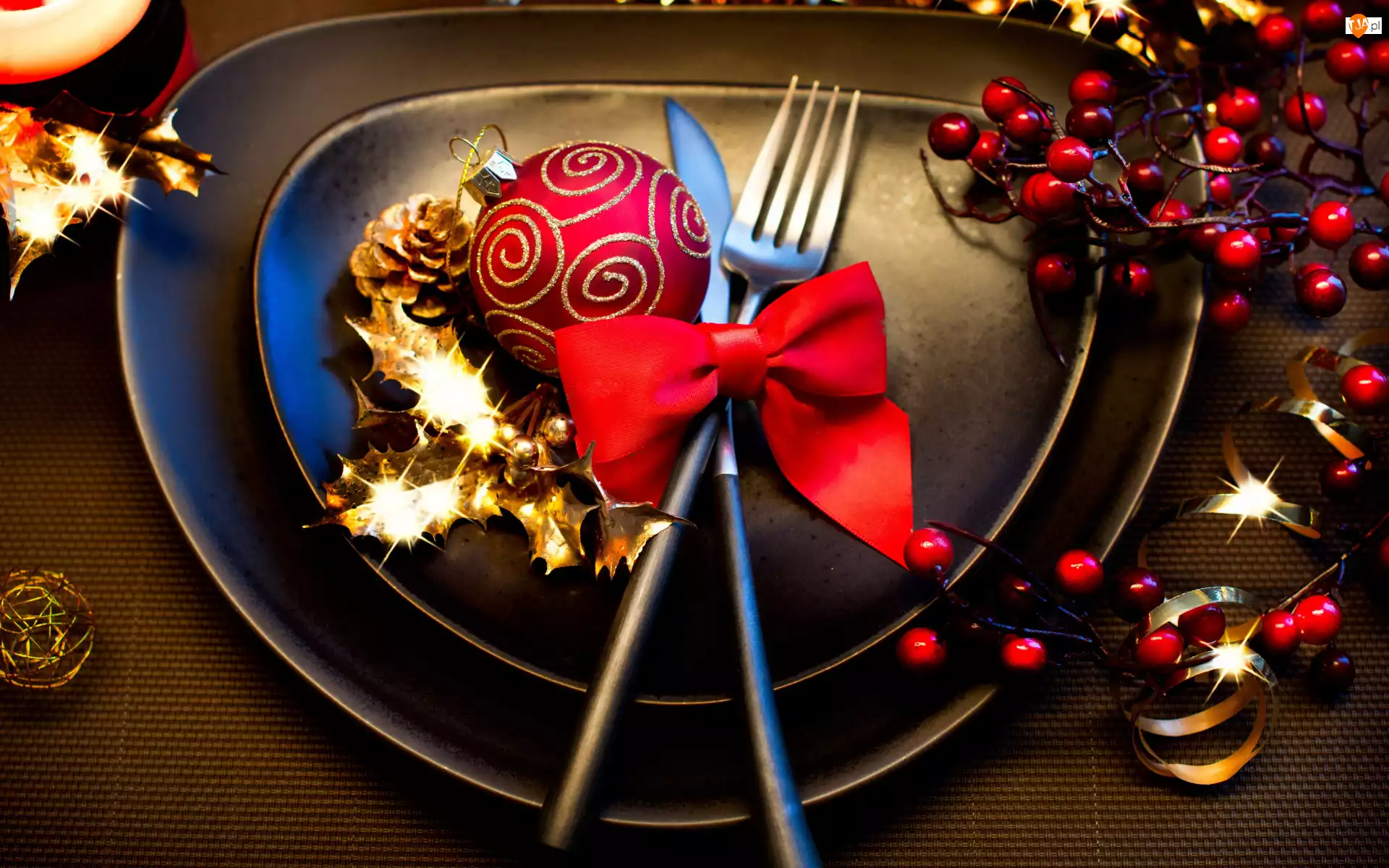 Świąteczne, Dekoracja, Talerz, Boże Narodzenie, Nakrycie, Bombka, Ozdoby