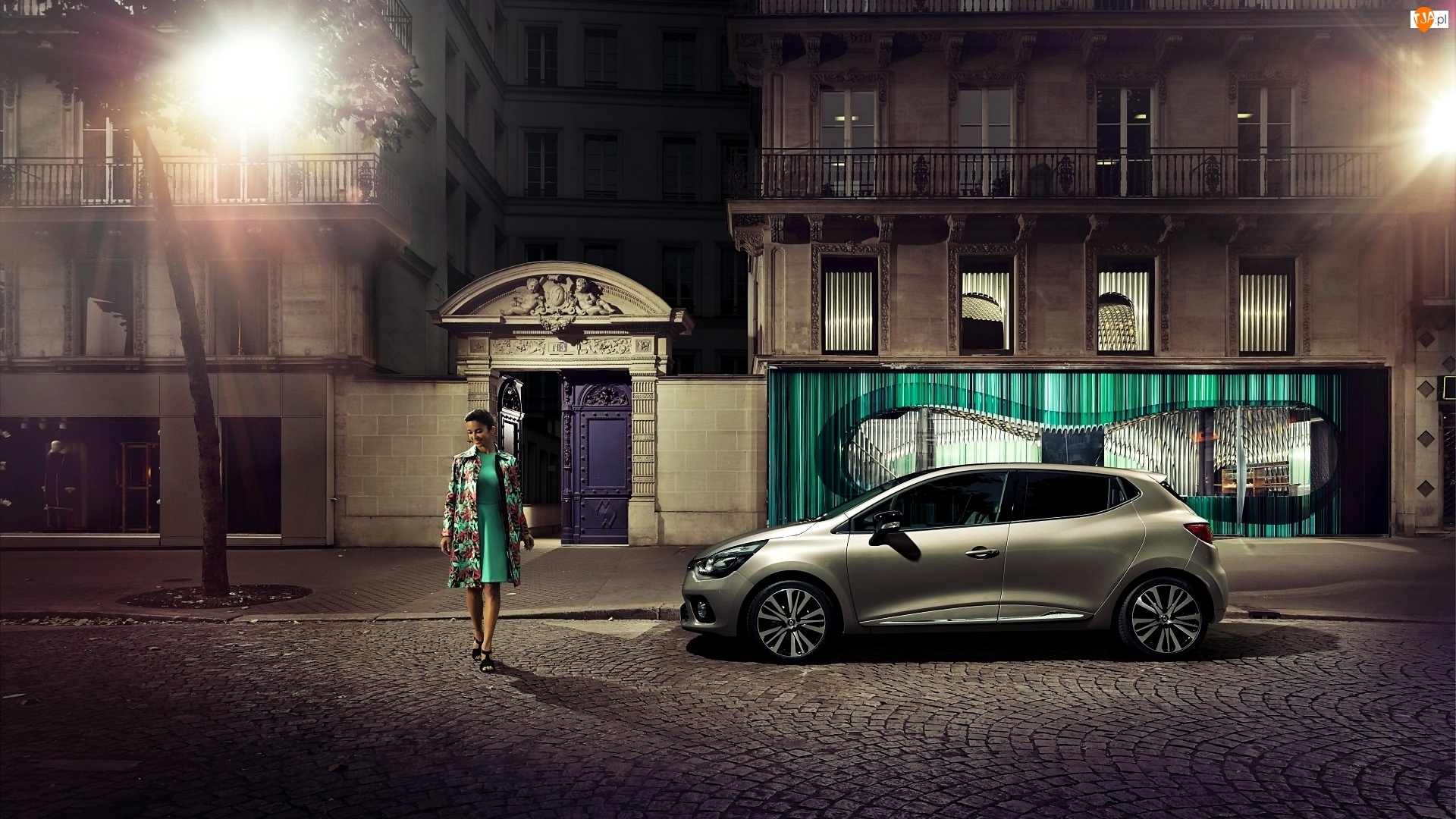 Ulica, Wieczór, Renault, Kobieta, Clio, Domy
