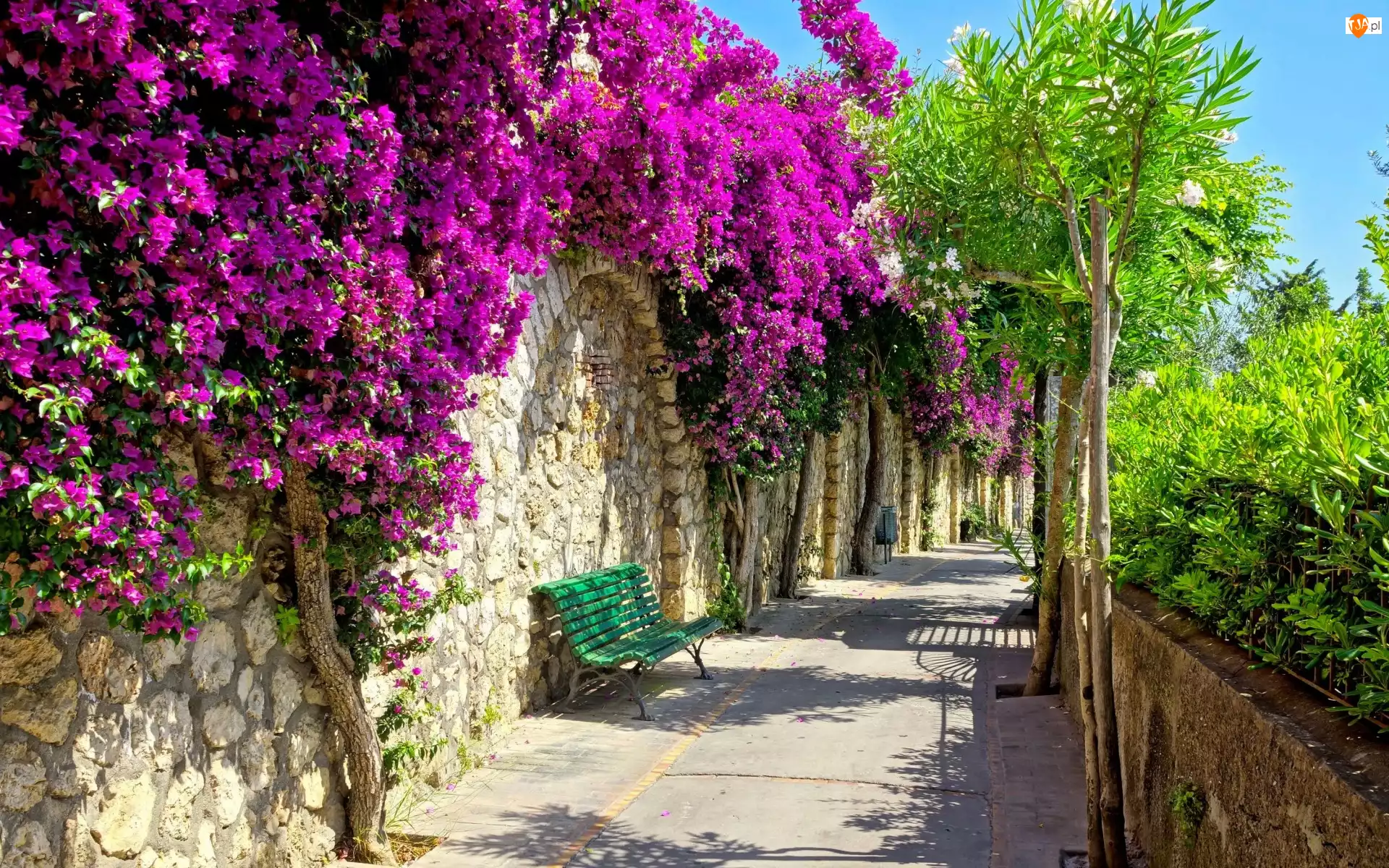 Tagi: Uliczka Kwiaty Mur Drzewa Ławka